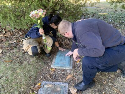 November 30th marks the anniversary of the Branchville Volunteer Fire Company and Rescue Squad’s sole line of duty death. Lieutenant James Melton suffered a heart attack while on the scene of a Beltsville house fire in 1959. Throughout the past week our members have come together to honor the Melton and to ensure that we never forget. Branchville Fire Chief Eric Gove along with other members remembered and honored Melton today by detailing his helmet, which we proudly display year round, cleaned and laid flowers on his grave site and discussed his lasting legacy.